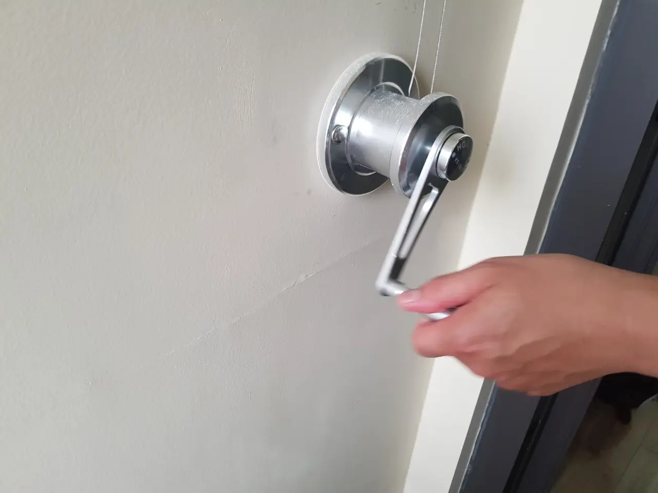 - Bước 3: Lắp đặt bộ tay quay mới: Nếu bộ tời giàn phơi thông minh mới không khớp hoàn toàn với các lỗ khoan cũ trên tường, bạn có thể cần xác định lại vị trí, khoan thêm lỗ mới. Sau đó, cố định bộ tời mới lên tường một cách chắc chắn bằng các vít đi kèm, đảm bảo không bị lỏng lẻo.