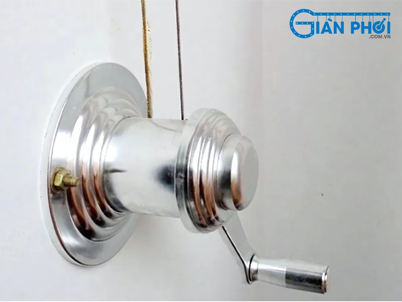 - Đặc điểm: Tay quay, bộ tời được thiết kế tách rời. Bạn chỉ cần lắp tay quay vào bộ tời khi cần nâng – hạ giàn phơi. Cơ chế truyền động thường đơn giản, ít tích hợp các tính năng chống rối cáp phức tạp.